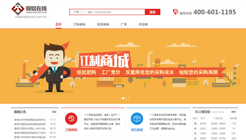 銅鋁在線為有色金屬行業(yè)的電子商務(wù)交易平臺(tái),采用系統(tǒng)自動(dòng)組批團(tuán)購(gòu)的方式,將需求相同的客戶(hù)組批給統(tǒng)一廠家競(jìng)價(jià),以組團(tuán)形式在降低買(mǎi)家采購(gòu)成本的同時(shí)降低工廠的生產(chǎn)成本。平臺(tái)同時(shí)提供現(xiàn)貨采購(gòu)模式,供用戶(hù)實(shí)現(xiàn)快速線上交易。