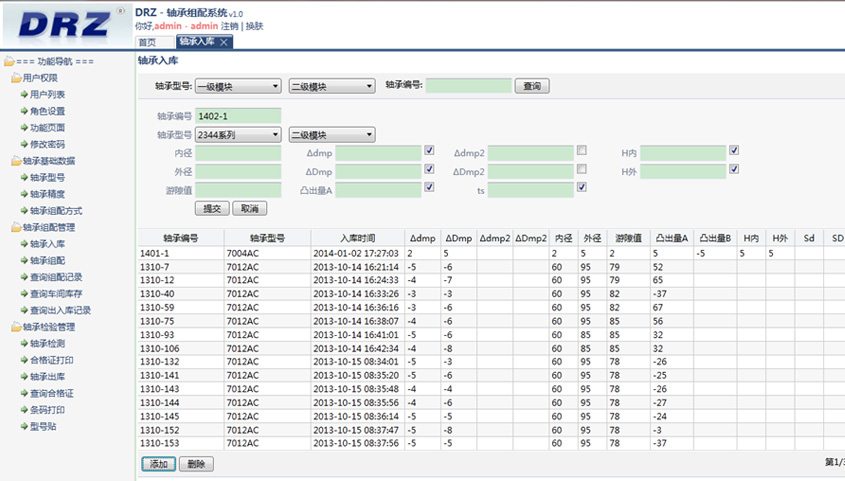 - 軸承組配管理:管理軸承組配的整個(gè)過(guò)程,包括軸承入庫(kù),軸承組配,軸承出庫(kù)等